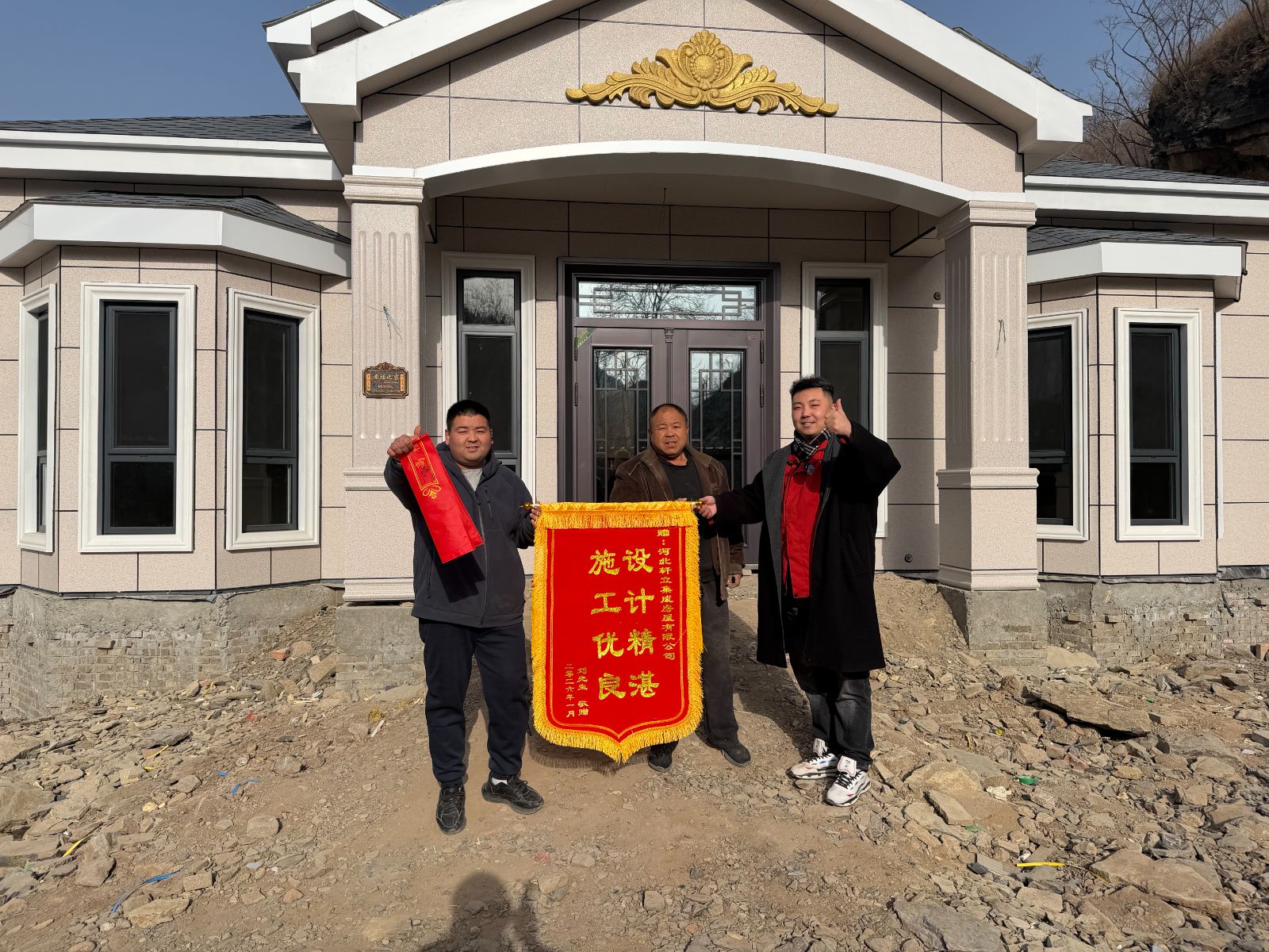 近日,軒立房屋接連收獲了三面來自業(yè)主的錦旗。紅底金字,熠熠生輝,每一面都承載著一份沉甸甸的認(rèn)可。他們從張家口懷安縣、保定唐縣、石家莊藁城區(qū)跨越而來,地域雖不同,贊譽卻同歸——共同訴說著對軒立房屋專業(yè)建房服務(wù)與卓越施工品質(zhì)的褒獎。