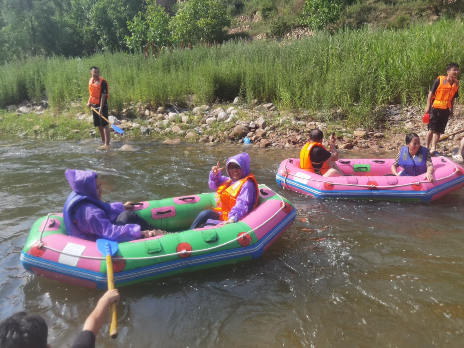 待船行駛至灘高浪急的水域,周邊亂石穿空、驚濤拍岸,這時大家手腳并用,互相扶持,團結協(xié)作,彼此照應,在湍急的河流中劈波斬浪,穿過一個又一個險灘,沖過一個又一個漩渦,樂趣無窮,在享受漂流帶來的快感時也增進了彼此之間的感情。